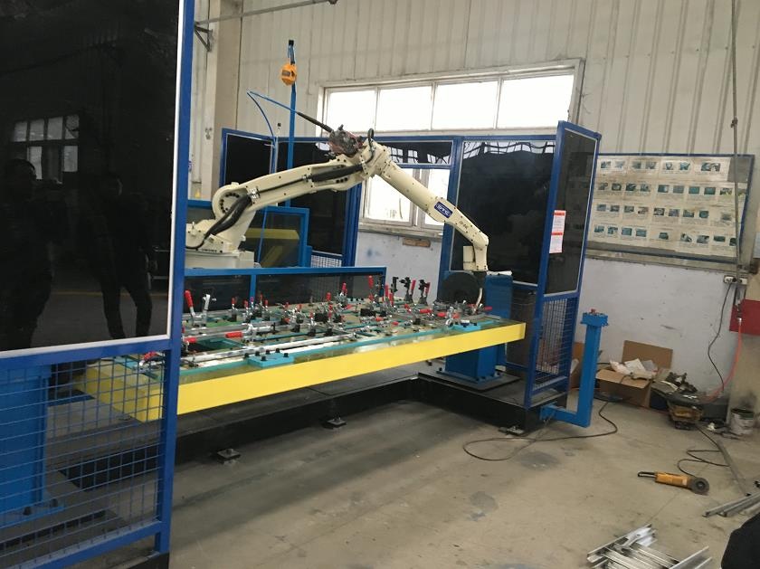 3、采用雙工位布局,可以有效的防止在工件拆卸時(shí)機(jī)器人的空置時(shí)間,效率較之前提高了3倍。工件焊縫均勻,產(chǎn)品補(bǔ)焊率低,產(chǎn)品質(zhì)量整體提升。