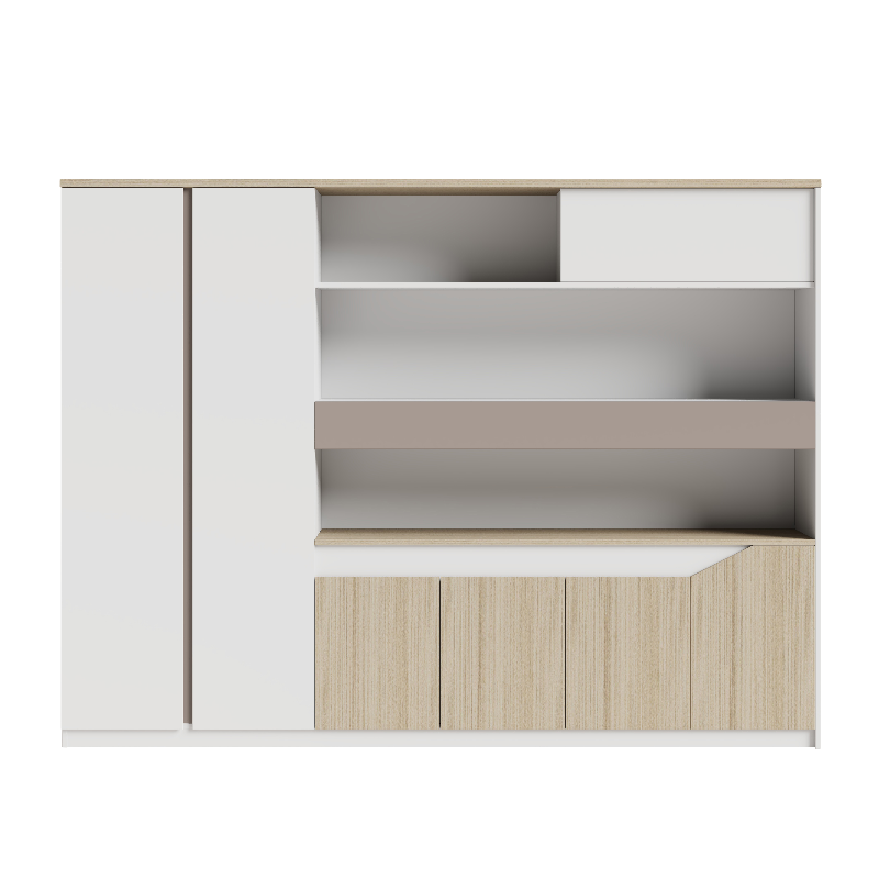 1、基材:符合E0級(jí)標(biāo)準(zhǔn)的MFC板材 2、對(duì)開衣柜(伸縮掛衣、儲(chǔ)存功能) 3、私密收納/開放式展示