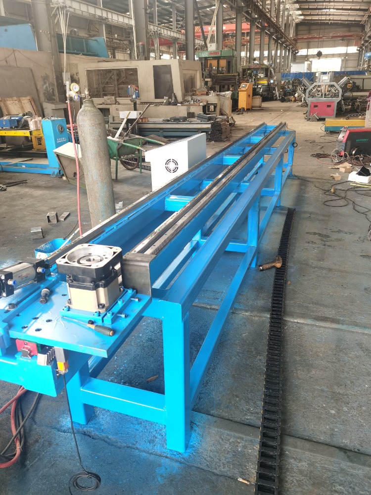 數(shù)控沖孔機,可配沖床、鉆床使用。送料長度6米??蓻_等距孔,非等距孔位,任意孔距??刂茮_床自動沖孔、或鉆床自動鉆孔。